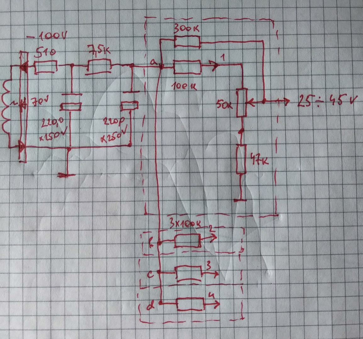 Пошук привів до діодного випрямляча на -90В, де зразу за мостом стояв конденсатор. Коли я в це місце поставив резистор, шпильки зникли. А чи не було б корисно це зробити і в випрямлячі анодного струму? Поставити резистор хотя б на 5-10 ом.