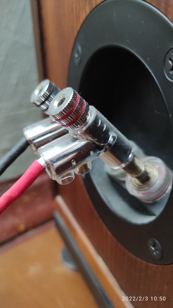 У меня не шоурум и кабеля я понапрасну не перетыкаю. Вся моя домашняя система обвешана немецкими кабелями. Колонки подключены тоже немецким акустическим коаксиальным проводом на 6мм2 и эти, типа "родиевые" цацки стали как родные. Перед этим стояли титаффы из берилиевой меди, но они несколько хлипковаты оказались, чуть зацепишь кабель и они уже гнутся. Менять ничего не собираюсь, пока по крайней мере).