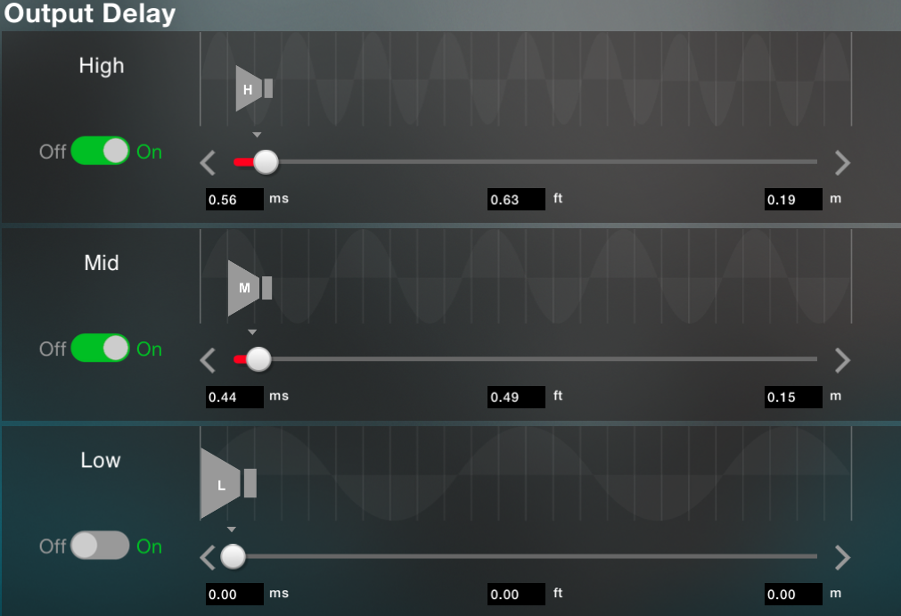 В симулятор забиваются расстояния от центров динамиков (по вертикали или горизонтали), их расположение по X,Y, задержки Z, и размеры излучателей.