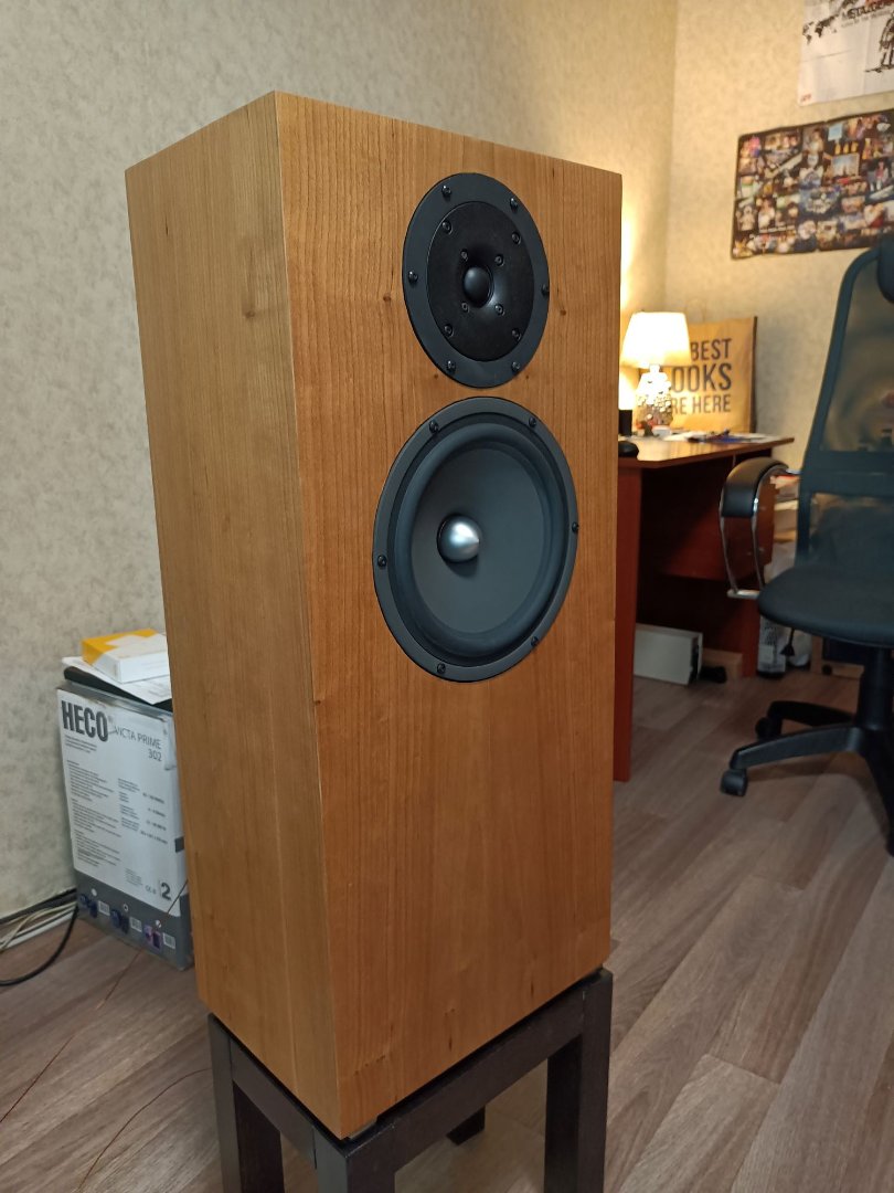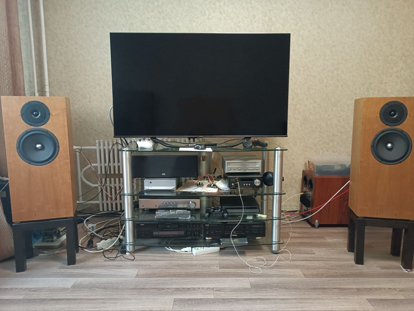 Акустика тоже была совершенно разная (еще начиная с 2010г), сейчас пришел к авторской - корпус Аудионот AN-E, динамики - топовые Seas Excel. Корпус собран из березовой фанеры со всеми перегородками в точности как у оригинала. Выглядит несколько простовато, но играет отменно! В целом получился где то третий уровень AN по соображениям, что довольно круто. Акустику собирал мой приятель который занимается этим на профессиональном уровне, а также помогал Георгий Крылов еще. Кроссовер тоже на хороших компонентах - фольговые конденсаторы, шунт на электролите, воздушные катушки (заказал на басовик ленту в парафине уже). Кроссовер перебирался несколько раз по мере финансовых возможностей. Стойки мне отдали бонусом. Хочу попробовать родные AN в металле.