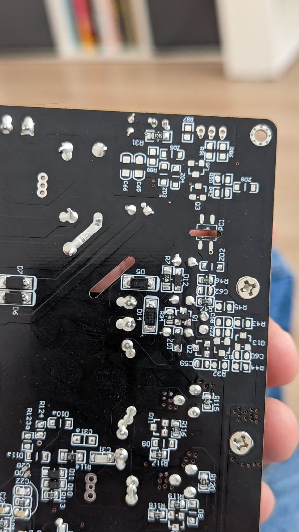 У него не распаяна часть схемы, похоже это была защита какая то.