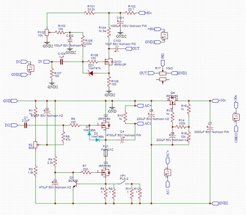 Истоковый повторитель на мощном IRFP150 нагружен на генератор тока на однотипном транзисторе, а все имеющиеся в схеме электролитические конденсаторы находятся под электрическим потенциалом, что заметно минимизирует их влияние на звук.
