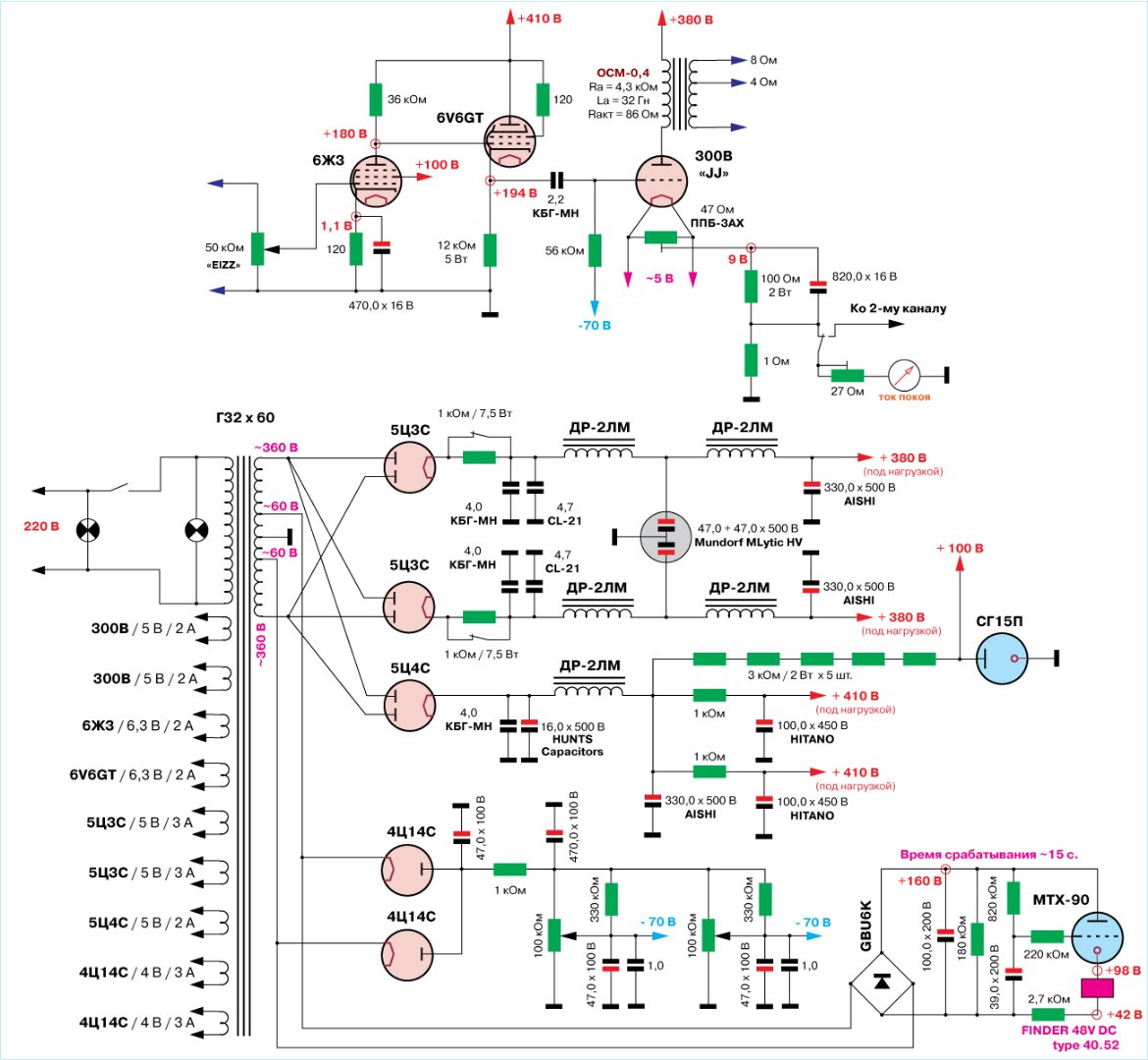 - несколько пентодных каскадов (E81L, EL83, 6П9, 6Ж4, 6Ж3).