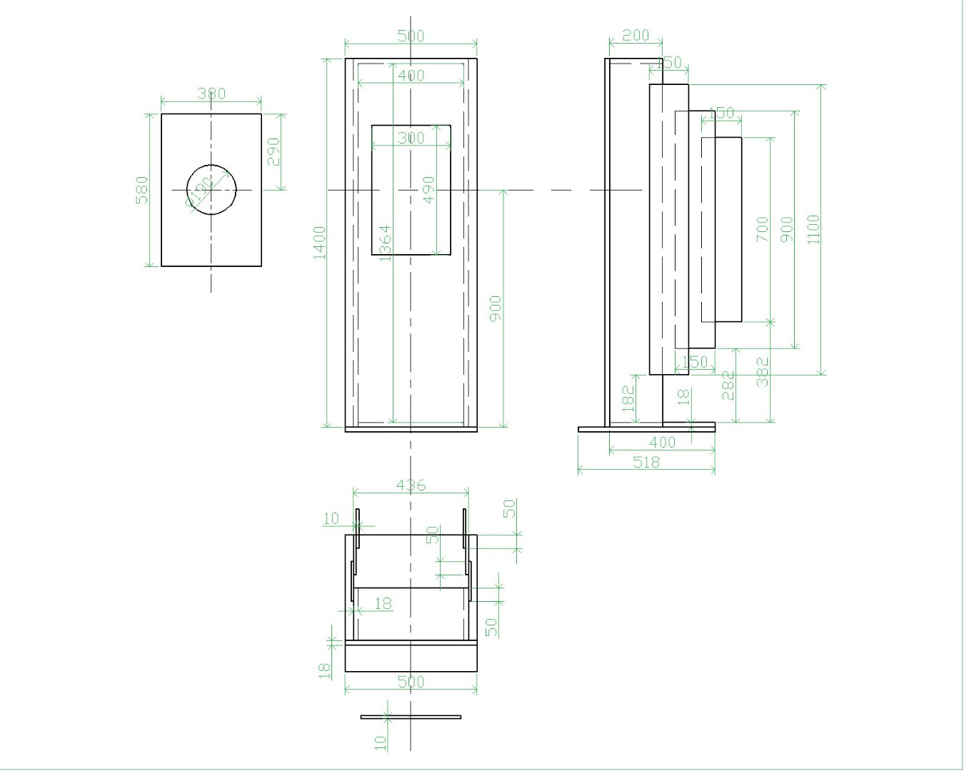 Креслення було взяте із Мережі. Це неглибокий і досить високий відкритий ящик, де на рівні встановленої голівки змонтовані додаткові “крильця”. Тим самим запобігається надмірній громіздкості АС. Встановлювати такі АС слід по кутах кімнати, але не щільно до них, а на відстані 0,7-1 метр до кожного з кутів.