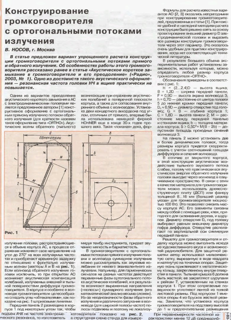 sivanko писал(а): 15 май 2022, 10:06 Перелистуючи електронні сторінки журналу Радіо (12/2003) наткнувся на цікаве акустичне оформлення Орто. Автор рекомендує великий дифузор і низьку мех. добротність.