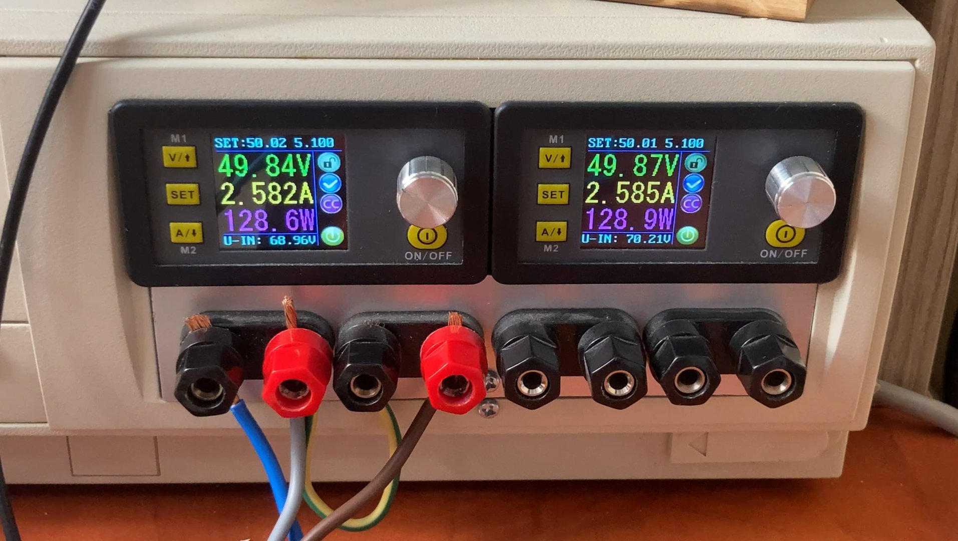 Замер мощности при питании 2х50Вольт и нагрузке 4 Ом, получилось 285 Ватт налегке. Немного позже протестирую на максимальную мощность.