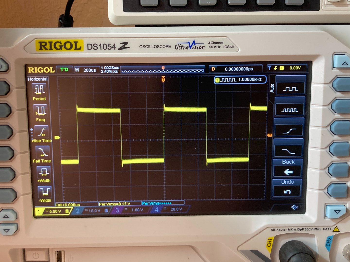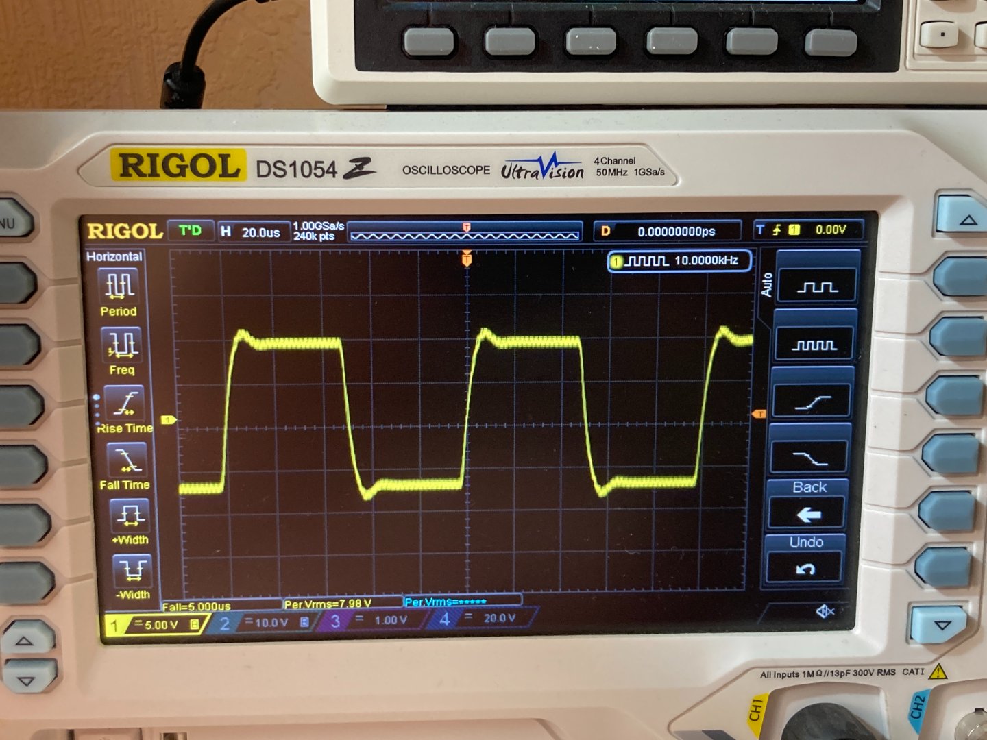 Замер меандра, входной конденсатор 22мкф не закорочен перемычкой. Замер при нагрузке 4 Ом, но при нагрузке 8 Ом результаты те же самые, ничего не меняется. Меандр отличный как для Д класса.