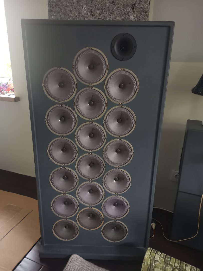 Были пара щитов по 8шт в каждом 5гдш4-4 с ВЧ по центру. Посмотрев в сети одну конструкцию переделал щиты, уменьшив размеры в два раза. Получилось такое открытое оформление, только щиты стали по 4динамика и расположились друг за другом. Расстояние между щитами 10-11см. Получается типа "тяни-толкай" в плоском ящике, но со щелями. Такую конструкцию применил на СЧ в трёхполоске. В принципе звучание в двойном щите понравилось больше, чем просто щит. По звучанию пара четвёрок похожа на один ШП динамик большего размера. Пробовал подключать на весь диапазон две секции установив друг на дружку и подключив в паралель (16шт динамиков) уже не так звучит как хотелось.