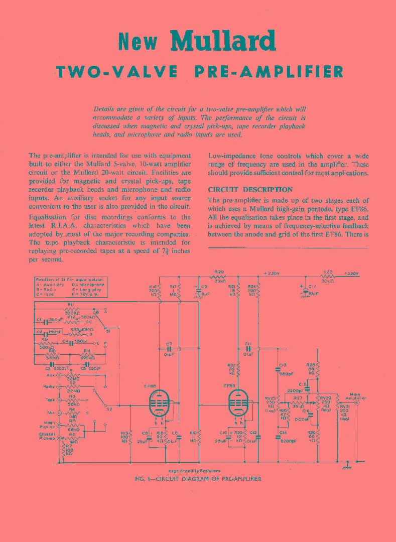 Среди схем фонокорректоров мое внимание давно привлекли несколько – с коррекцией АЧХ в цепи ООС, охватывающей первый каскад. При этом, это не разработки наших дней, а конструкции полувековой давности. Прежде всего – от Mullard (копия этой схемы была в журнале «Радио» №5 за 1965 год, с. 63).