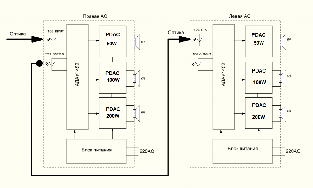 З аналогом є одна велика ахіллесова п'ята, аналог дуже складно узгодити з імпульсними силовими пристроями, щоб зробити гідний звук у цифроактиві з аналоговим входом, потрібно довго і нудно розробляти плату АЦП. Я точно не хочу зализати в ці нетрі, там все набагато складніше та довше. За рекомендацією дуже розумної людини, я відмовився від аналогового входу більше десяти років тому, і до цього дня нітрохи не шкодую, оптика і блютус повністю перекривають мої потреби в передачі звуку на АС або підсилювачі. Я розумію потребу деяких людей в наявності аналогового входу, але в моєму випадку, таким людям доведеться відмовитися від аналога, або просто мій цифроактив не для них. Аналогового входу не буде, та й потім, в еру цифрових технологій, аналоговий вхід це рудимент який приносить безліч головного болю споживачеві, то шнурок не той системи, то шуму від IБЖ наловився, то петлю організував і не знає як перемогти фон 50Гц і т.д. і т.п.