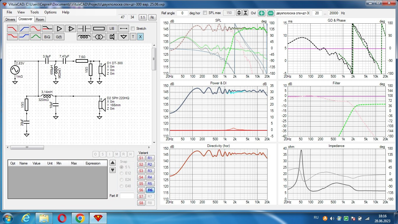 Сейчас достал саб, когда-то делал по Аудиокиллеру. Как-то он не так работал, поэтому отложил. Сейчас решил проверить рассчеты корректора Линквица. Измерил параметры Т-С динамика, забил в программу. Она посчитала входные параметры для рассчета корректора. установил дин в ящик саба, замерял резонанс и добротность, они отличаются от посчитанных программой. Забил параметры Т-С и обьем в Бассбокс Про, третьи результаты