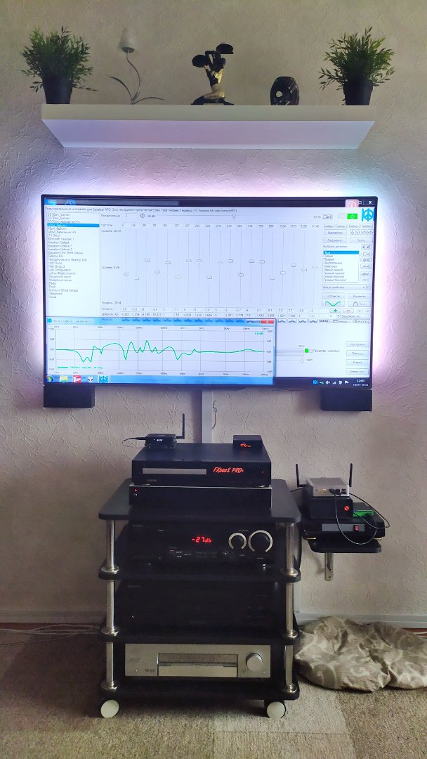 В испытаниях участвуют программа REW (микрофонные измерения и создание пресетов, с эквализацией полученных АЧХ по целевой кривой).