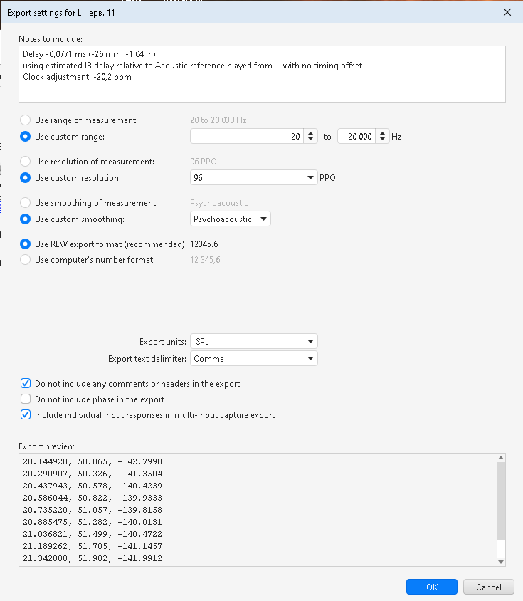 Октавное сглаживание которое я применяю для измеренной АЧХ называется психоакустическое, такое сглаживание на мой слух даёт золотую середину между детальностью и искусственностью звука, если использовать октавное сглаживание 1/24 то звук в итоге будет несколько искусственным, так как в результаты измерений АЧХ в зоне прослушивания пролазит очень много отражёнки которую не нужно глубоко эквализировать.