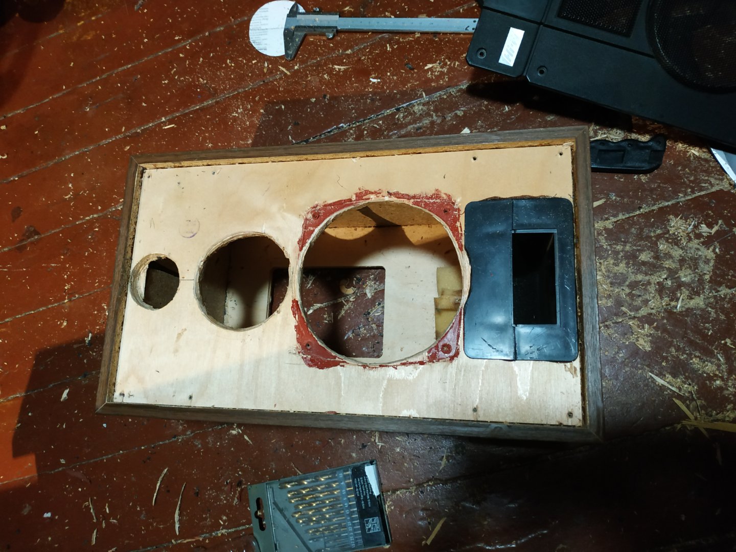 Для СЧ динамика был изготовлен стакан объёмом 1,5л что бы изолировать СЧ динамик от НЧ. Его на фото не видно, но он есть. :D