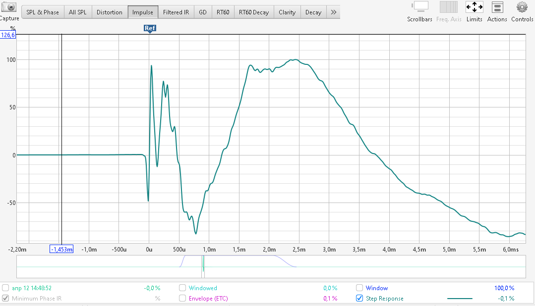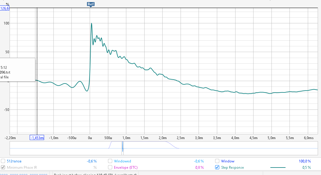 Собственно степ респонз показывает насколько наши три динамика работают синхронно и синфазно.