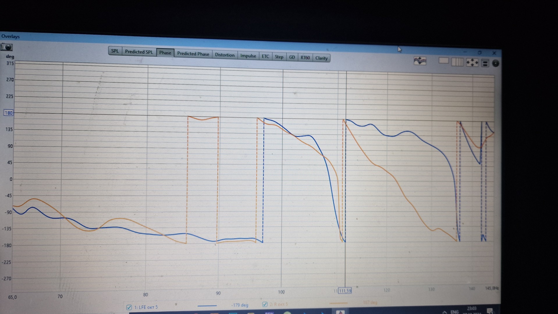 В программе room eq wizard есть замечательный пункт overlays,при замере выбрал use acoustic timing reference (R) правую колонку, померил ачх правой колонки и саба,после через phase alignment tool выставил нужную задержку,как результат примерно до 110 герц саб и правая колонка по фазе идут практически в ровень,далее синяя линия это фаза саба,она начинает расходится с фазой правой колонки и мне чтобы это дело выровнять нужно правильно подобрать фильтр,примерно как на фото из интернетаuriy писал(а): 07 окт 2024, 11:25 А как вы вообще узнаёте фазу вашего баса?
