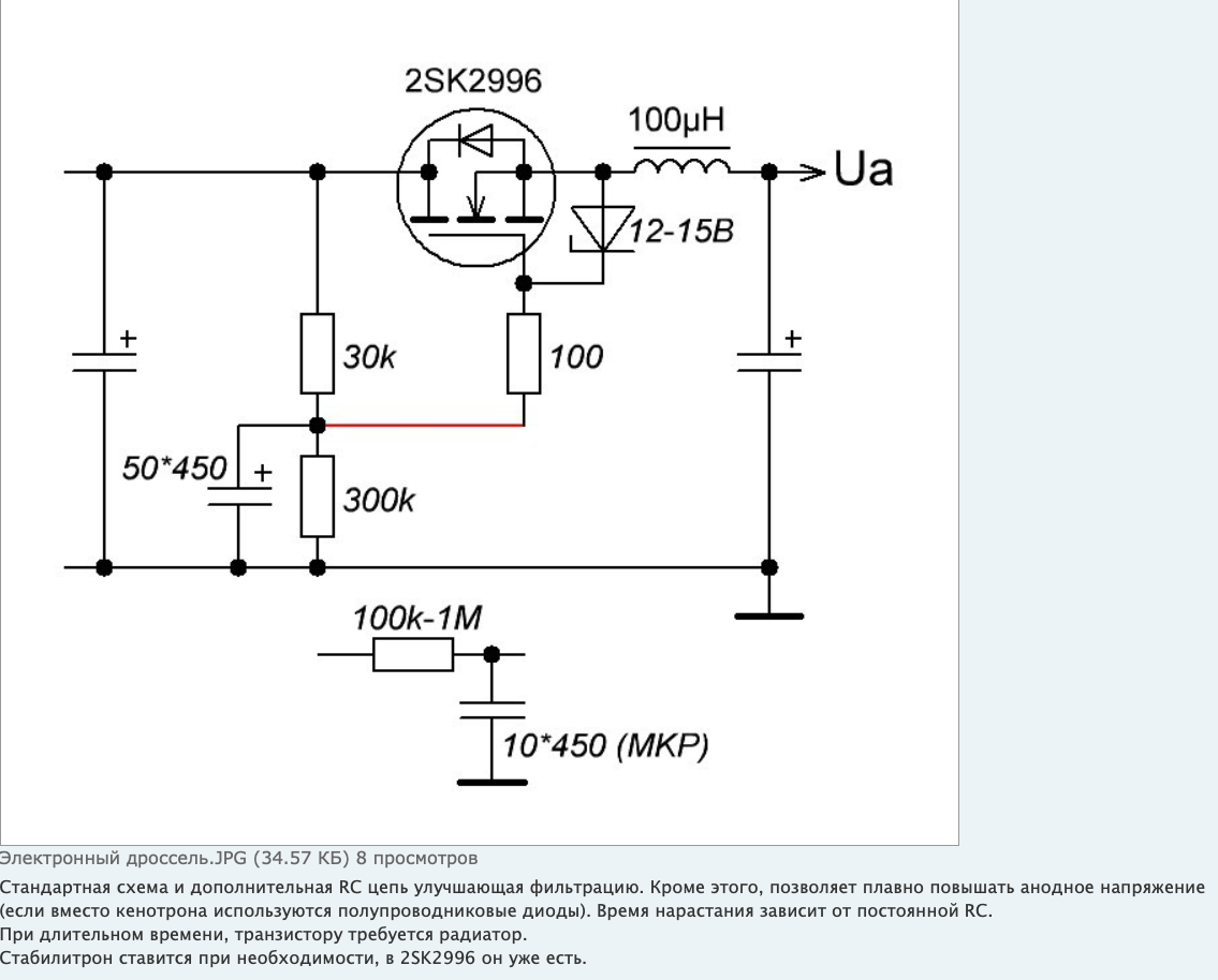 За основу взял схему предложенную нашим модератором LinuxManiac. Вот эту: Оригинальная схема китайца: Вместо дросселя буду использовать схему электронного дросселя, которой поделился со мной Justas*. При этом е-ссно используя диоды вместо кенотрона. Пока что обыкновенные кремниевые, т.к. шотки находятся далеко и за дорого. Потом поменяю.