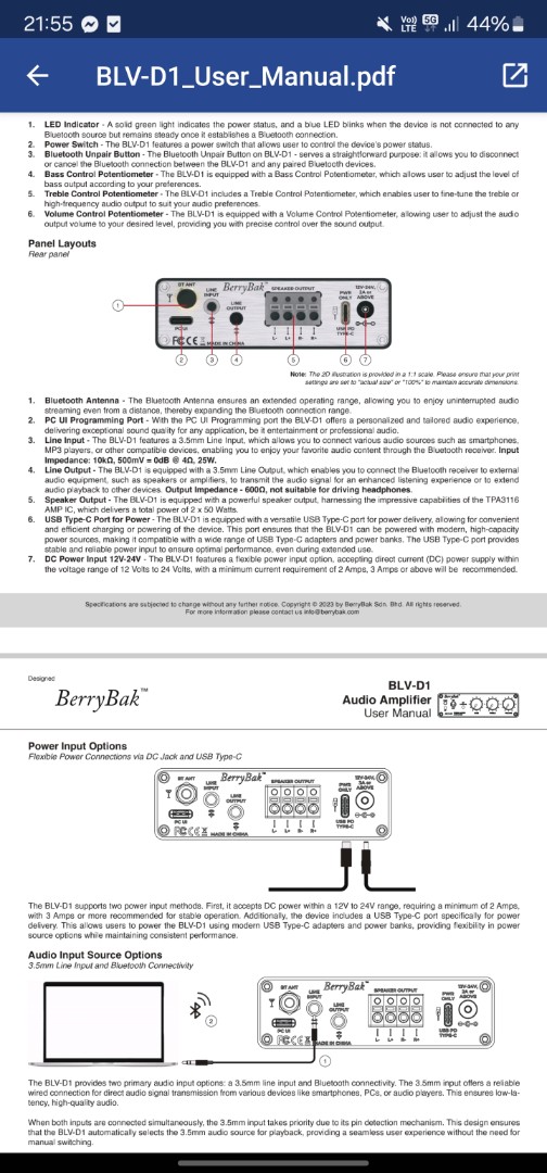 Вот из инструкции должен вообще от павербанка запитыватьсяmuxa писал(а): 07 янв 2025, 15:19по идее это только DSP ВР1048 питается от type c (и может быть усб звуковой картой) , не очень уверен что тра3116 можно запитать от него жеразве что с PD, чтоб те же 15-20Вольт тащить с зарядки.