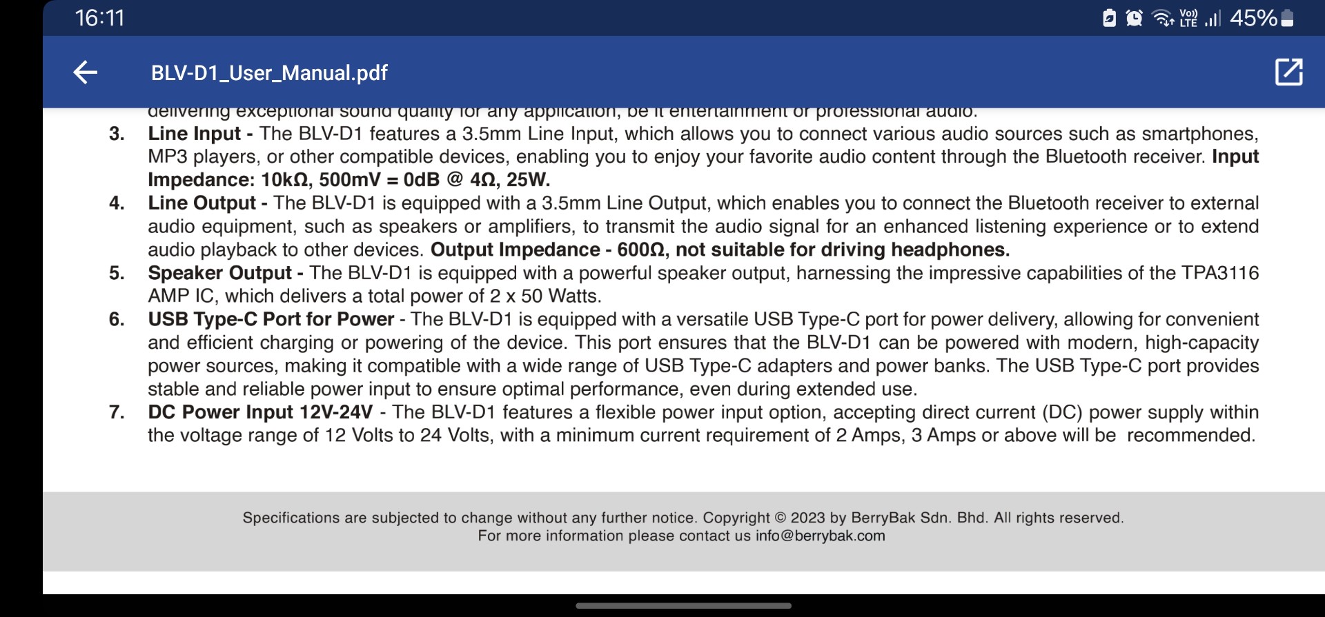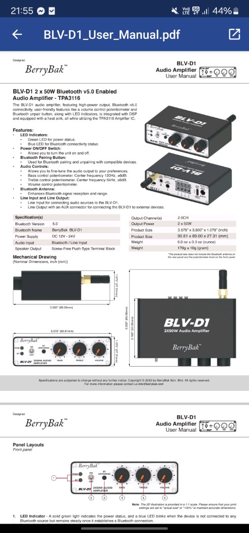Усилитель которого нет BerryBak BLV-D1