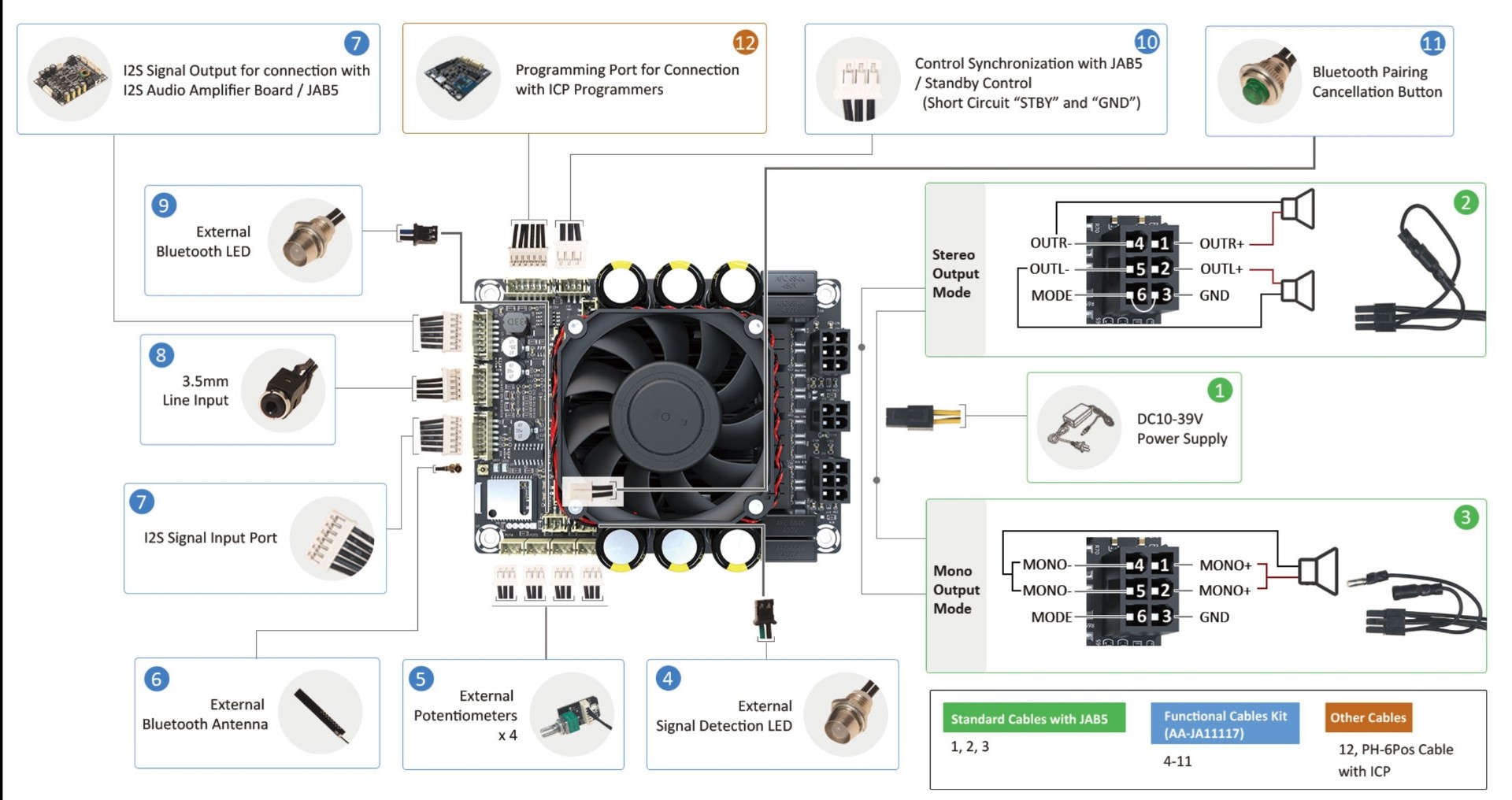 Также есть i2s выход,позволяющий подключить еще один усилитель Jab5 и иметь выход на 8 каналов.