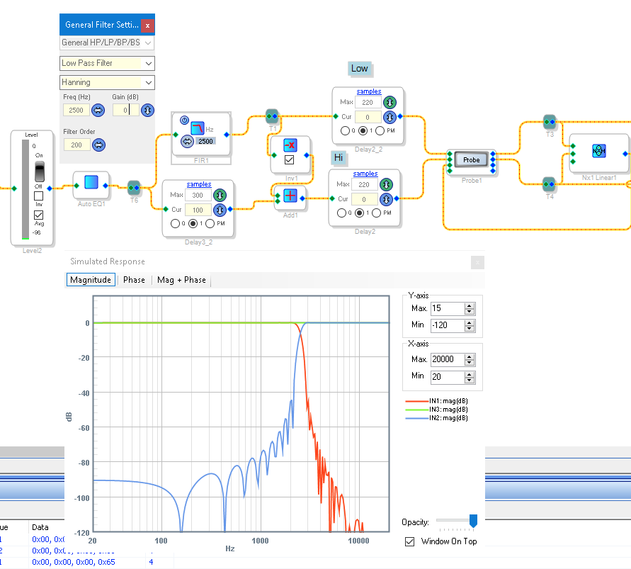 Программа Sigma studio позволяет написать проект под ваши нужды,конкретно в этом видео,я пишу на базе стокового проекта,свой проект под би-ампинг с фазолинейным кроссовером,с использованием room eq wizard и rephase.