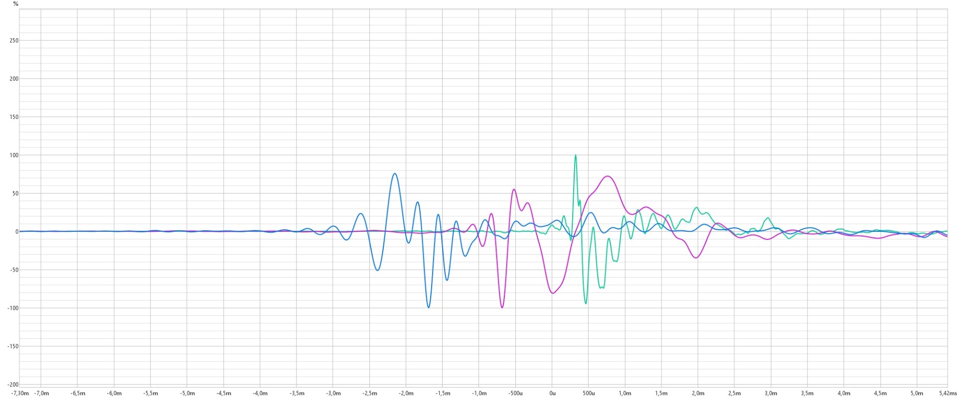 У вас не только привязка к времени гуляет как хочет, у вас ещё и полярность гуляет как хочет, АС то в прямом то в инверсном режиме излучает. Это не правильно, при таких измерениях нет толку находить задержки. Вы должны найти причину этих чудес чудесных и добиться стабильных измерений, а уже потом настраивать задержку.audiomaniac3 писал(а): 09 дек 2024, 23:46 У меня вот такая картина,все замеры в одном месте,импульсы слишком разнятся,