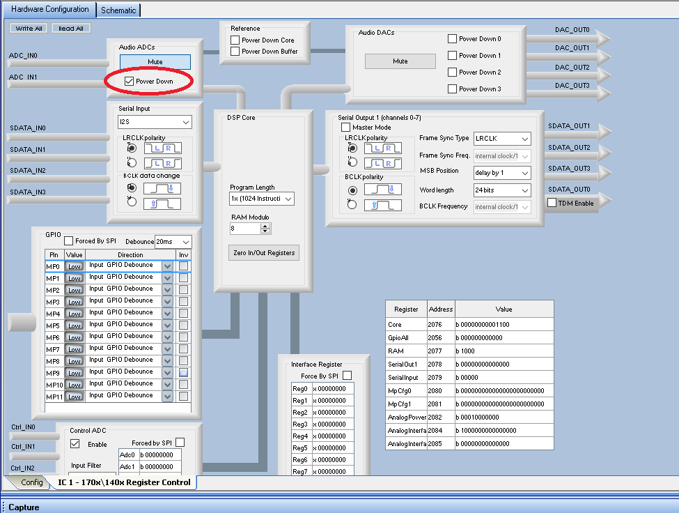 Еще вопрос,как на adau полностью отлключить ацп,мне нужен только i2s вход.