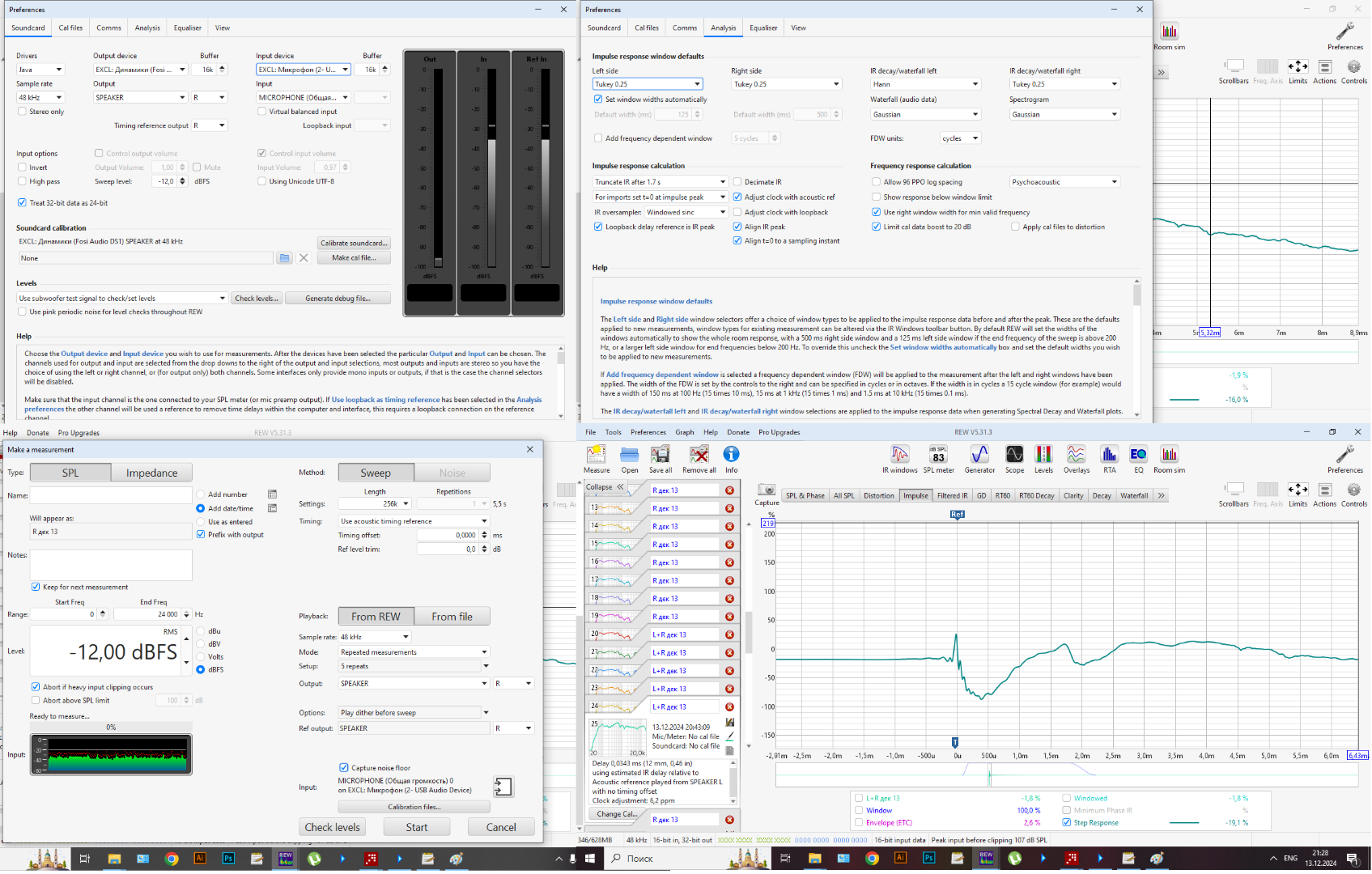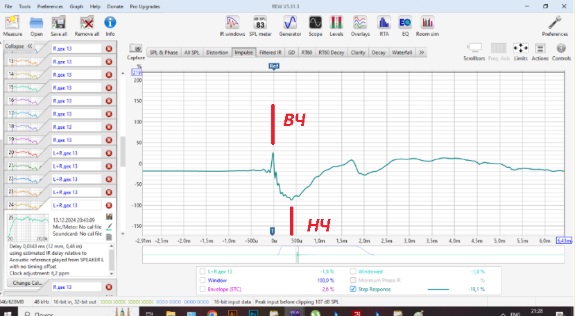 Пробовал замерять задержку так,пищалка подключена к левому каналу сч динамик к правому,растояние до микрофона примерно 10см от центра колонки,вообщем-то и всё, вот мои настройки.uriy писал(а): 13 дек 2024, 18:20 Потом, опишите как вы делаете измерения и покажите настройки REW перед началом измерений.