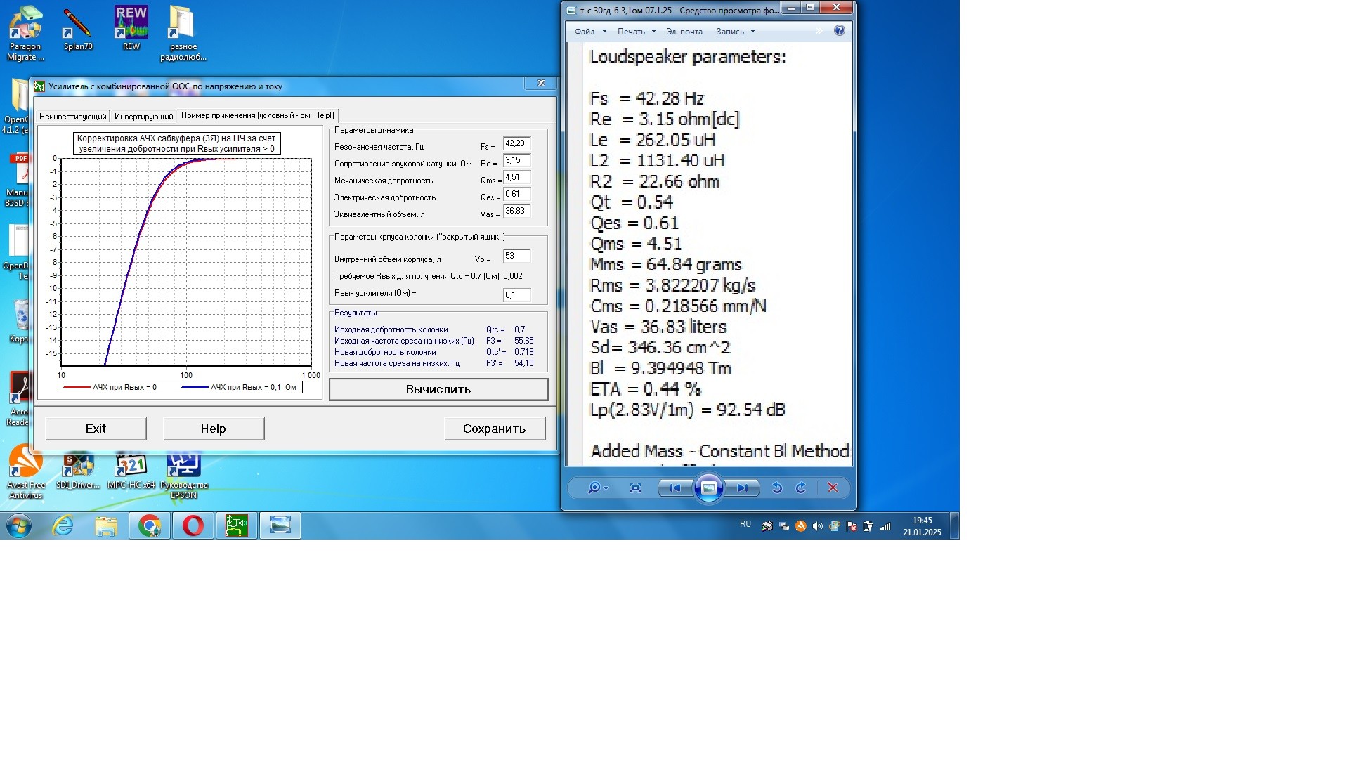 Предложу для полного комплекта на нч секцию головку 30гд-6. Согдасно измеренным параметрам в ЗЯ 53 литра F3 должна быть 54Гц. Для нч секции вполне. А с трансформатором Линквитца- и ниже.