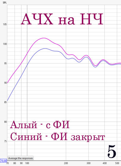 Рис.5 Получен подъём ниже резонанса 3-4 дБ, но и бубнящий горб вырос почти на 3дБ. В общем, всё печально, но по ходу детального изучения новых для меня программ, буду экспериментировать.