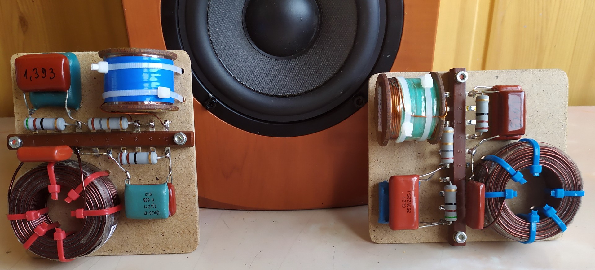 ФВЧ - 33Гц, порядки 1 и 3-й (для саба). Дроссели при питанием 12В, совсем не греются и с АЧХ на ВЧ всё в порядке.