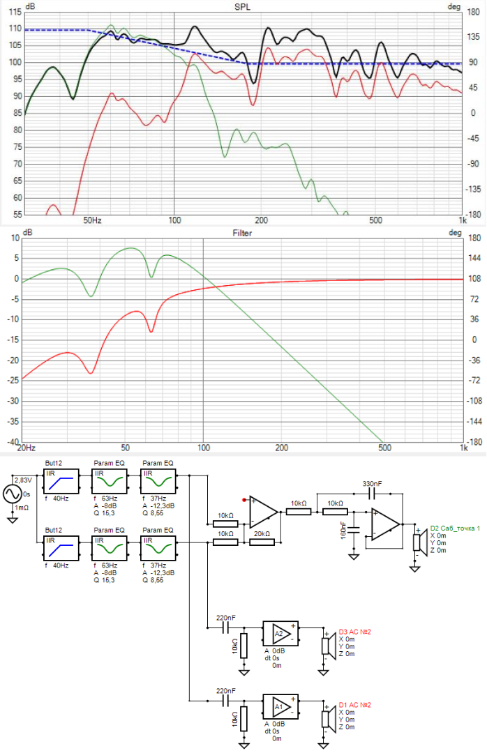 Остаётся добавить в схему крутилки общего уровня и уровня саба, ну подрихтовать общую АЧХ по Target кривой.