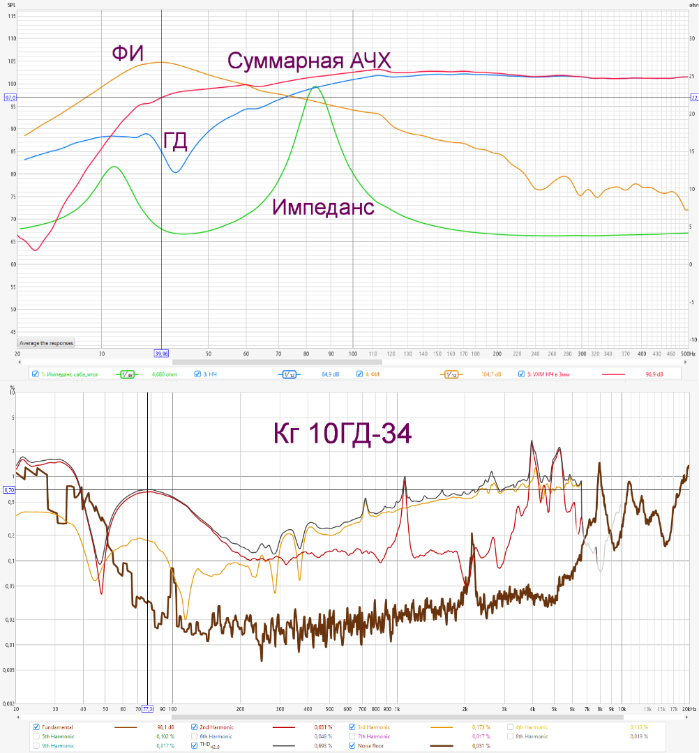 Измерил параметры TS динамика 10ГД-34, вбил в программу BassBox Pro.