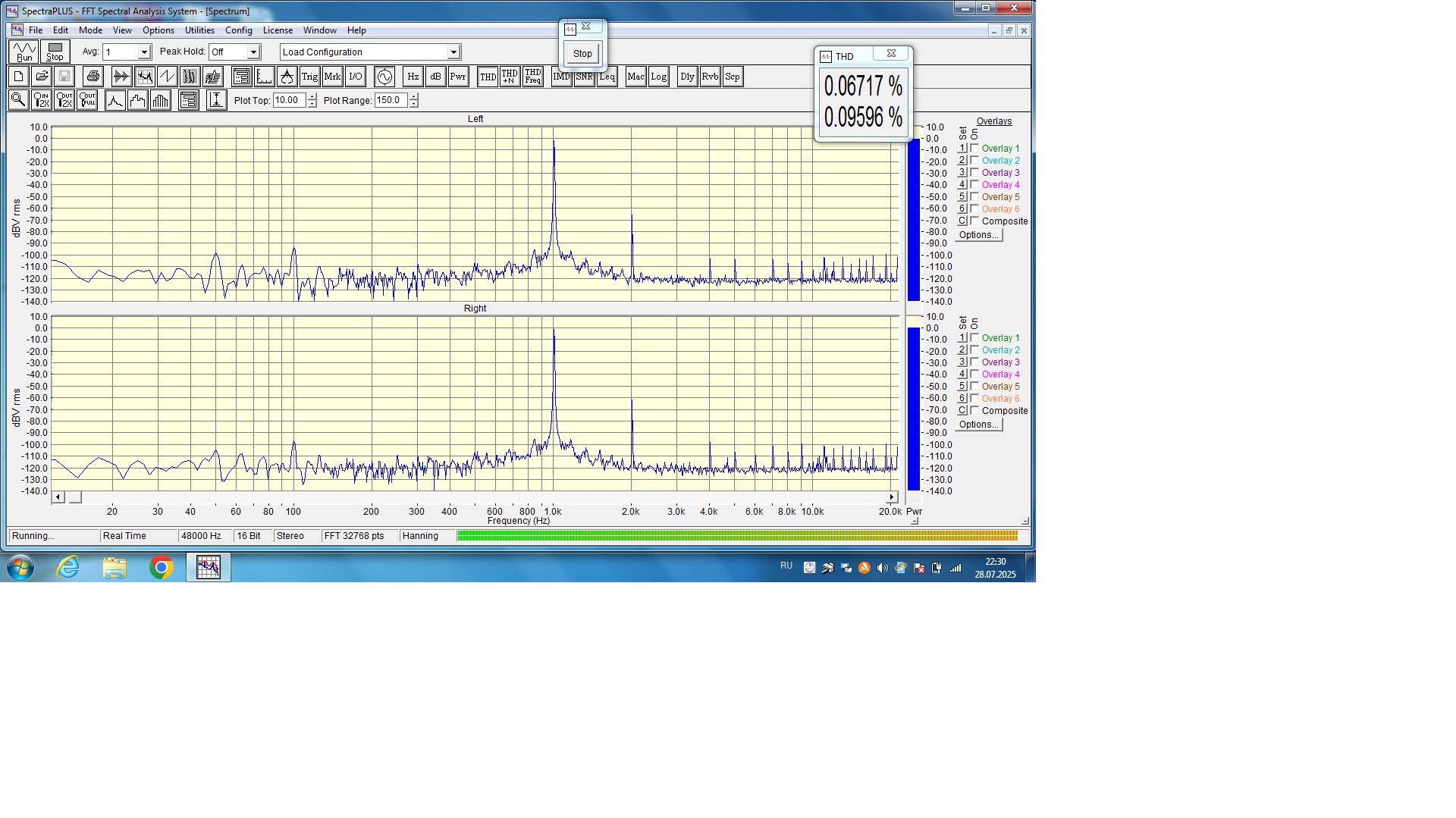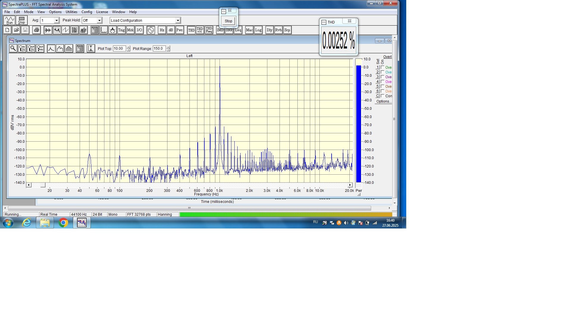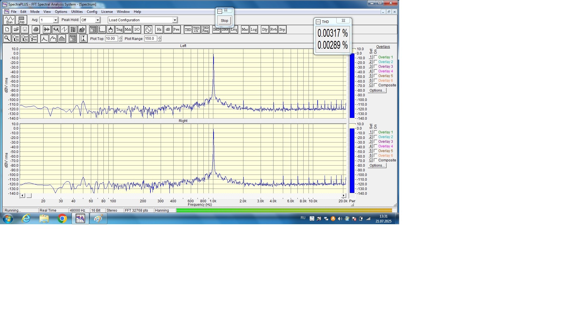 Знакомый подсказал что у этих чипов большой разброс по выходном току, заказал на Али 7 шт. Обошлось с пересылкой меньше 10 долл. Пока ехали заказал торик , печатные платы и собрал комплектующие. Приехали чипы. Все видно б/у, линейность подстраивается значит настоящие. Собрал макет: По факту из 8 имеющихся чипов не смог выбрать по выходному напряжению ни одной идеальной пары. Пришлось подкрутить ОС в одном канале на выхлопе. Конечно не по аудиофильски, но иначе никак. Спектр получился такой: Лес вокруг 1кГц видно земляная петля вход-выход на ноуте. Присутствует на всех моих Цапах, хотя реализация у всех разная.